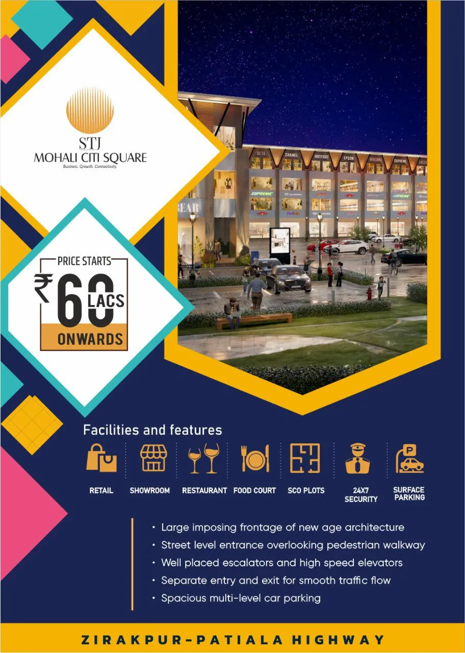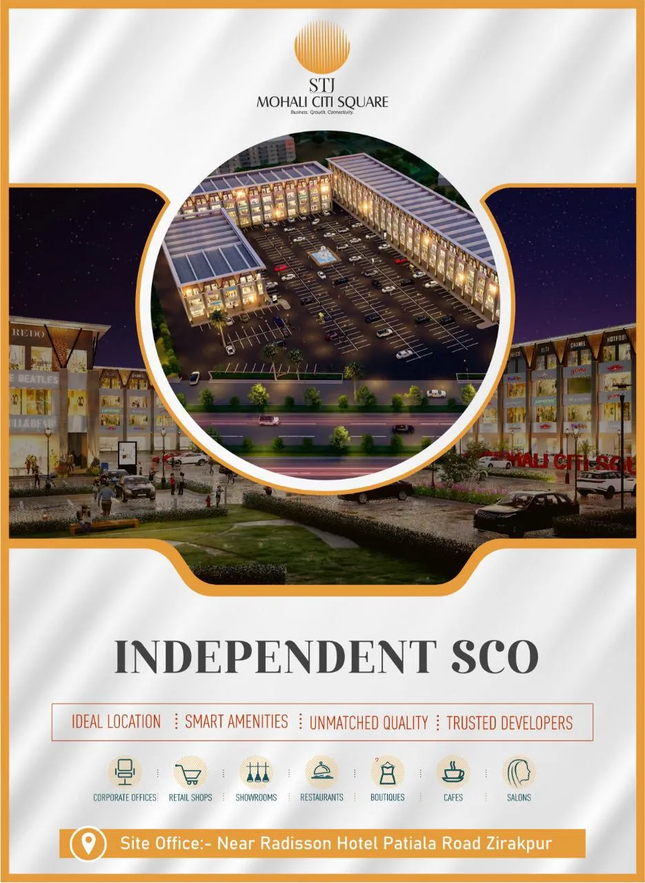 Mohali Citi Square 6-Story Built-Up Project With Lift, Highest level of quality and world-class Commercial design of Retail 6 Floors Approved 8*31.5, 10*31.5, 18*90, 33*90, 31*90 Built-up SCO Showroom/DSS/Bay Shops With Lift, Also Buy Independent Floor Wise. Fully Paid GMADA Auction Site & Total Land is 15 Acres